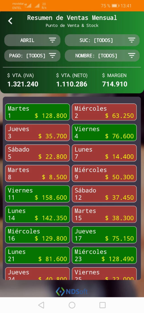 Con el resumen de ventas mensual podrá podrá saber que día del mes vendió mas.