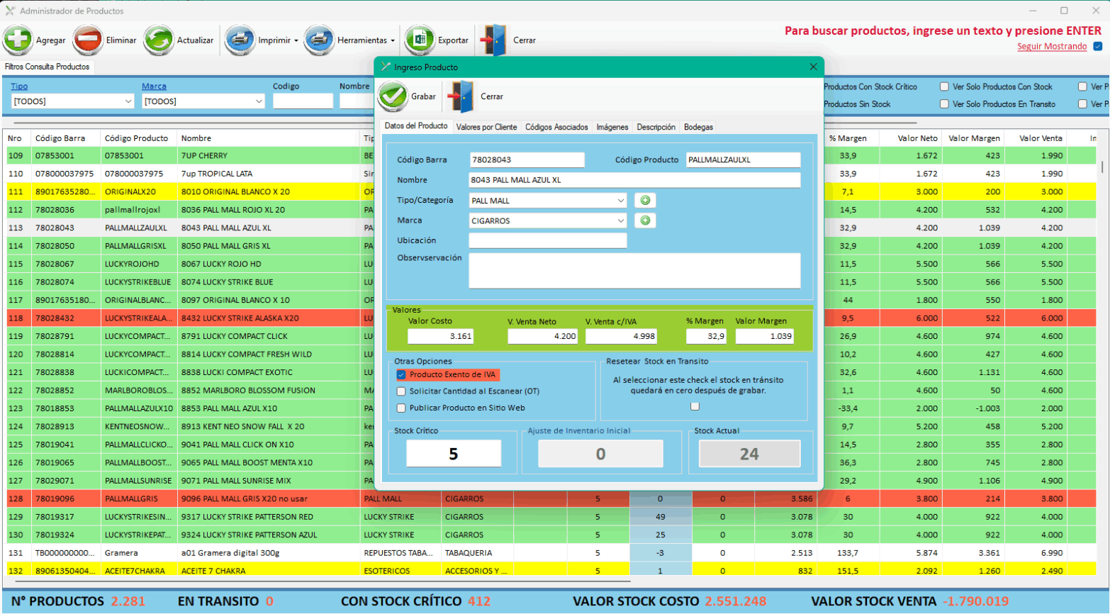 El software Gestión Ventas también cuenta con los módulos necesarios para el manejo de productos y el control de inventario.